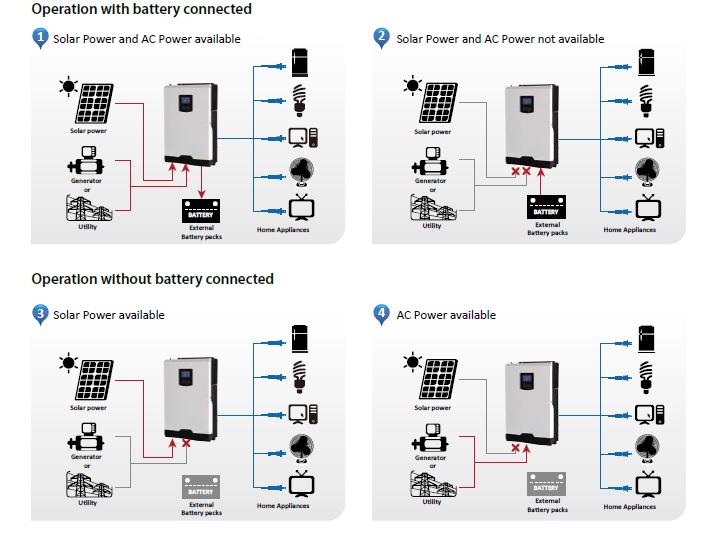 به طور کلی سانورتر یا اینورتر شارژر یک دستگاه با چند کارایی می باشد که می توان پنل های خورشیدی و باتری و برق شهری را به آن متصل نمود و خروجی AC شهری گرفت و همچنین سانورتر Voltronic به طور خودکار بین پنل خورشیدی و باتری و برق شهری سوئیچ می کند.